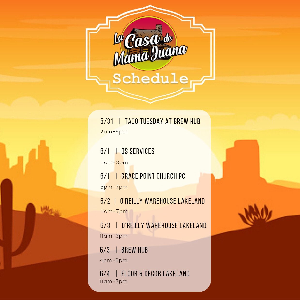 La Casa De Mama Juana On Twitter Here S Where You Can Find Us This Week Thank You For Your Continued Support Localbusniess Authentic Mexicanfood Foodtruck Shoplocal